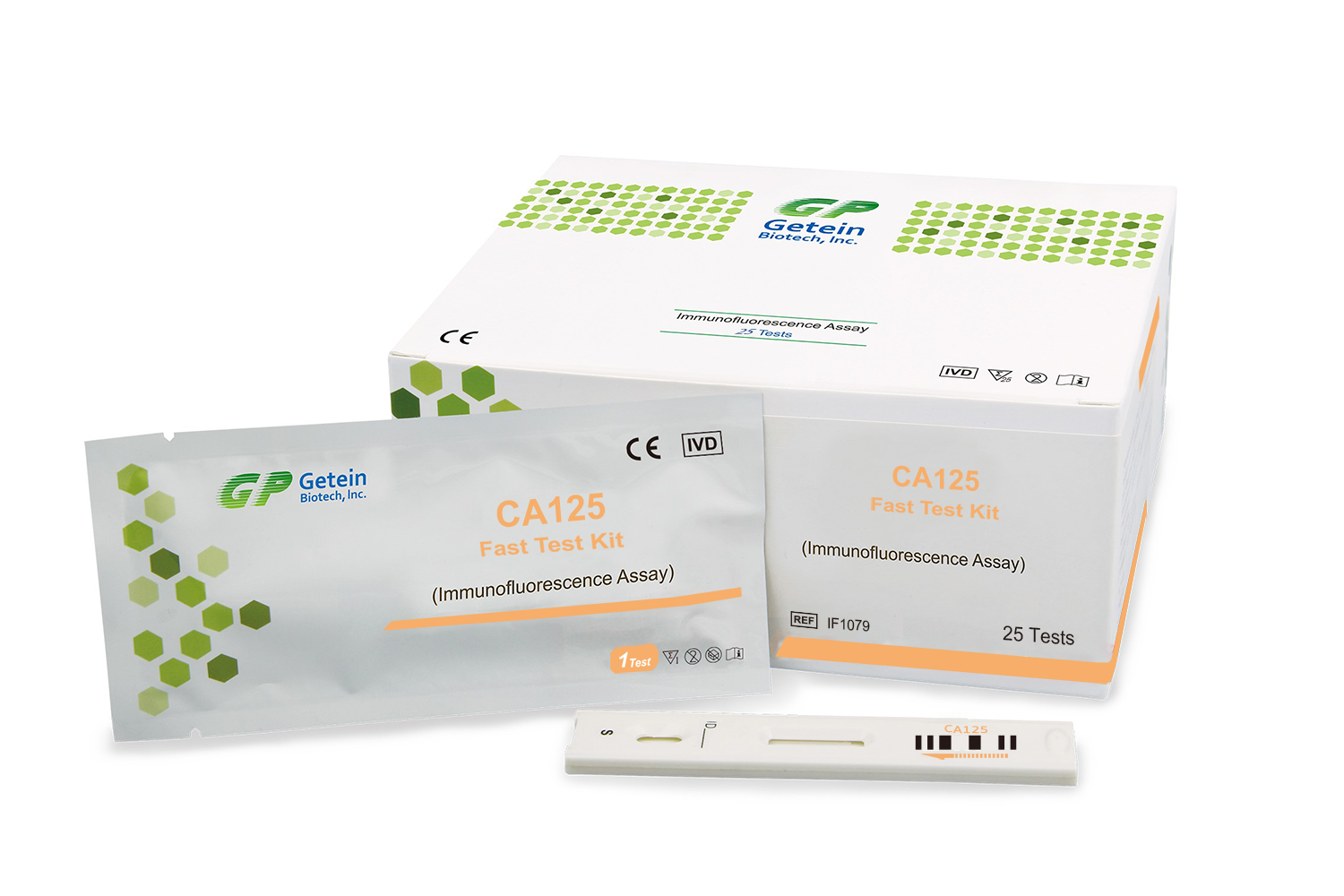 CA125 Test Kit based on fluorescence immunoassay technology for quantitative detection of Cancer Antigen 125 (CA125) in human serum, plasma or whole blood. The test aids ovarian cancer monitoring and is compatible with GETEIN 1100 and GETEIN 1160 analyzers.