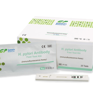 H.pylori Antigen Test Kit based on fluorescence immunoassay technology for quantitative detection of Helicobacter pylori antigen in human stool specimens. Supports diagnosis of gastric infection and is compatible with GETEIN 1100 and GETEIN 1160 analyzers.